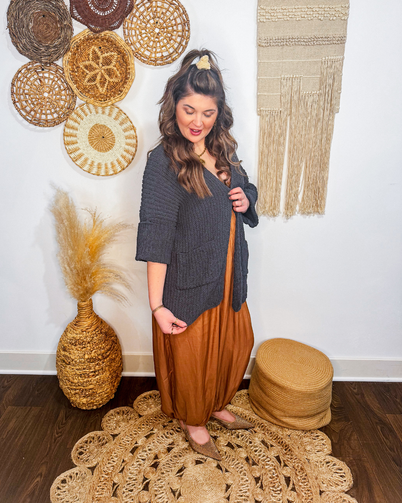 Wrap yourself in luxurious comfort with our Oversized Slouchy Cardigan! Made with soft, cozy fabric, this cardigan is perfect for lounging at home or layering over your favorite outfit. Its oversized, slouchy fit adds a touch of effortless style to any look. Stay warm and stylish with our must-have cardigan.