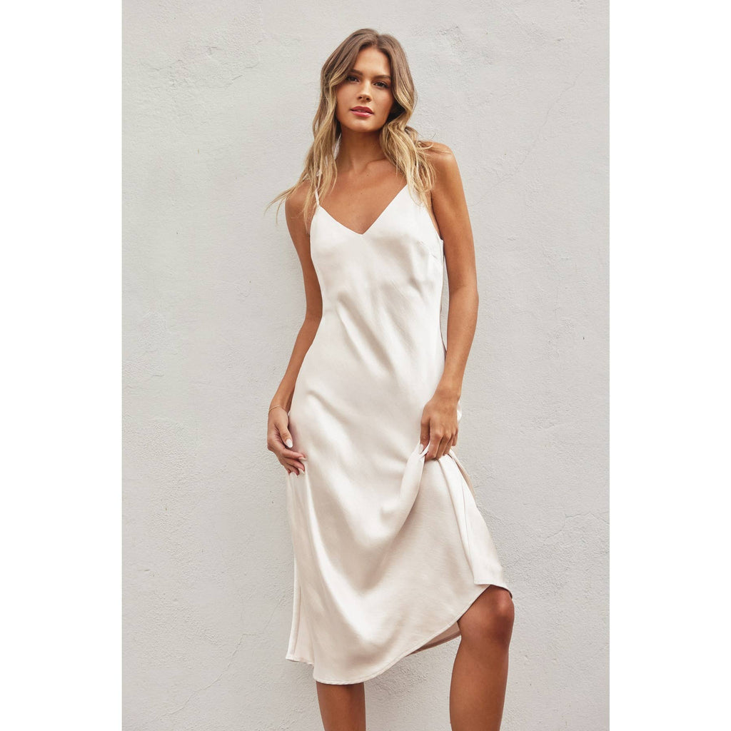 Indulge in luxury with our Pearl Nightfall Satin Slip Dress! This midi dress features a bias cut hem and adjustable shoulder straps, creating a flattering and customizable fit. Slip into soft, smooth satin and feel effortlessly elegant. Perfect for any occasion, day or night.