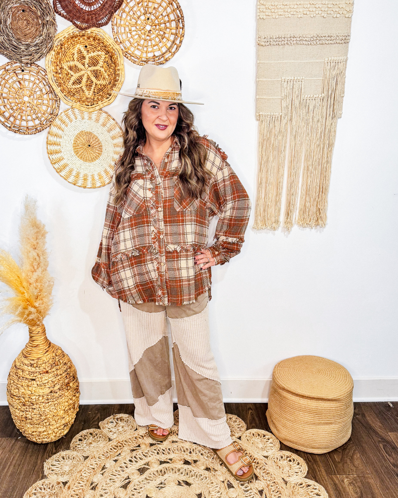 Elevate your style with our Hayfield Days Checked Shacket, combining the comfort of a shirt with the warmth of a jacket. Crafted from woven fabric with a distinctive checked pattern, its frayed edge detailing adds a trendy, laid-back vibe. Perfect for layering over casual or dressy outfits, this shacket offers versatile wearability and a unique look that stands out effortlessly.