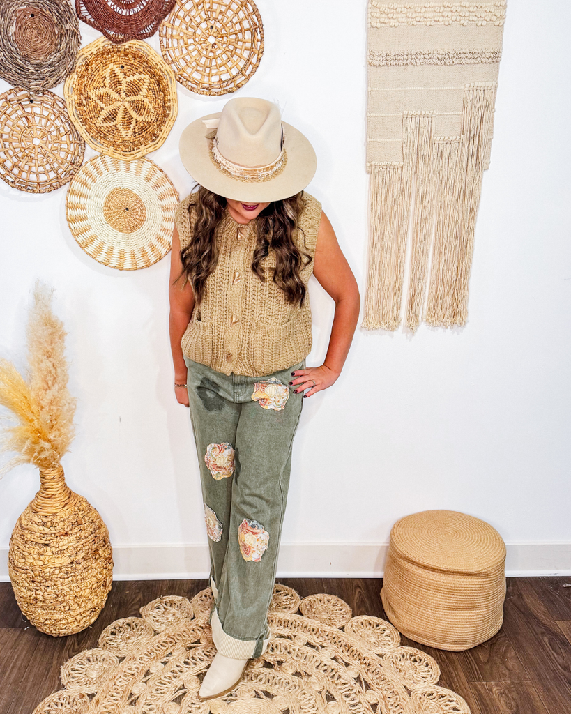 Elevate your casual wardrobe with our Harvest Garden Floral Patchwork Pants, combining timeless denim with playful floral patchwork for a fresh vintage vibe. Their relaxed fit ensures comfort throughout your day, while the rolled-up hems add a stylish, effortless finishing touch. Perfect for those seeking an easygoing yet eye-catching look that seamlessly blends charm and comfort.
