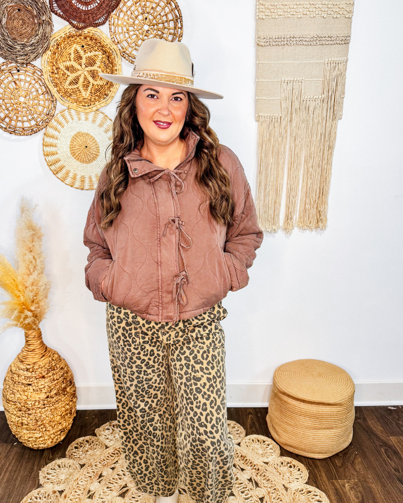Warmth & Woven Quilted Puffer/Ties (Brown)