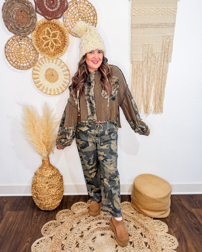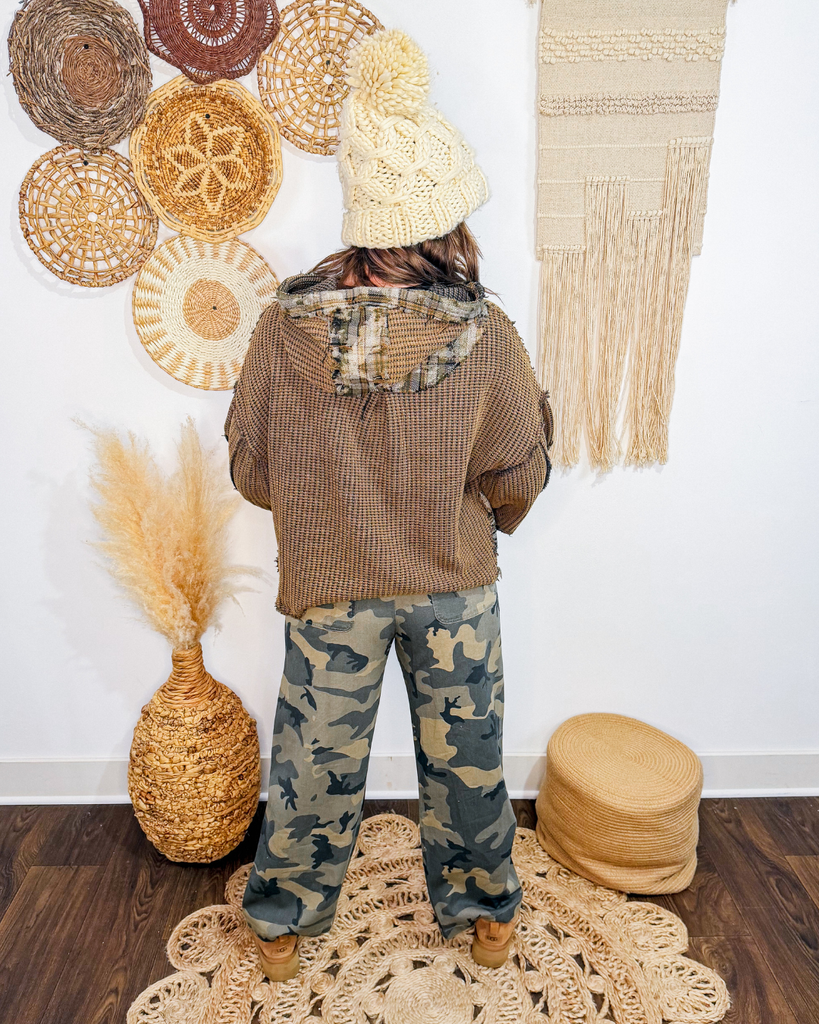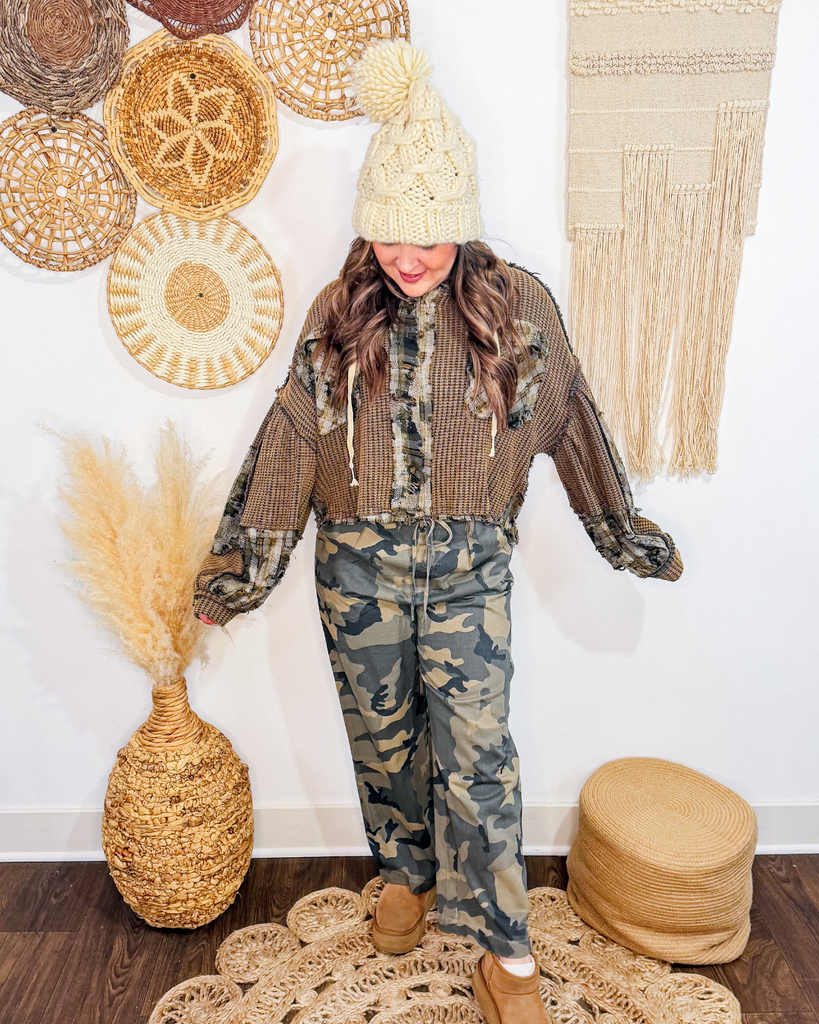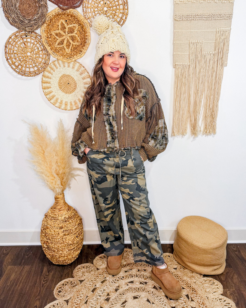 Discover effortless style with The Quiet Time Thermal Plaid Top. This thoughtfully designed piece features a relaxed, roomy silhouette that adapts to your movement, paired with a cozy hood and statement balloon sleeves for modern appeal. The soft thermal fabric delivers warmth without bulk, while classic plaid contrast detailing adds visual depth. Whether you're running errands or settling in for a quiet weekend, this versatile layer seamlessly transitions from casual to comfortable—the perfect addition to any wardrobe that values both comfort and contemporary design.